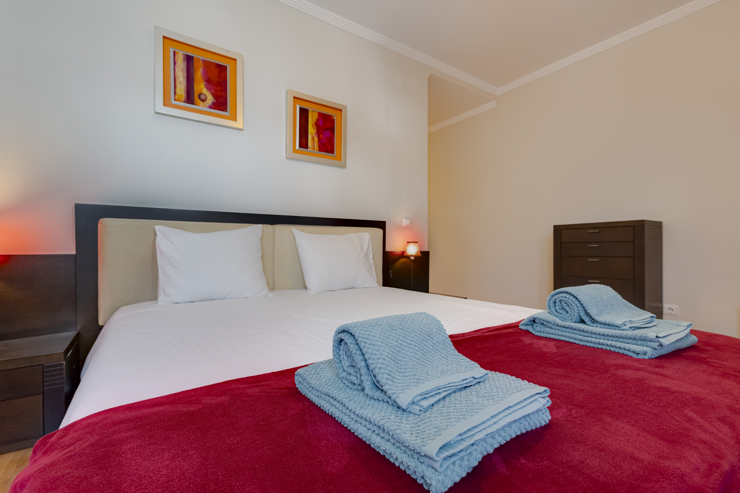 • Descanso: 2 amplios dormitorios decorados con exquisitez (ambos con cama de matrimonio de 160x200), incluyendo una suite privada.