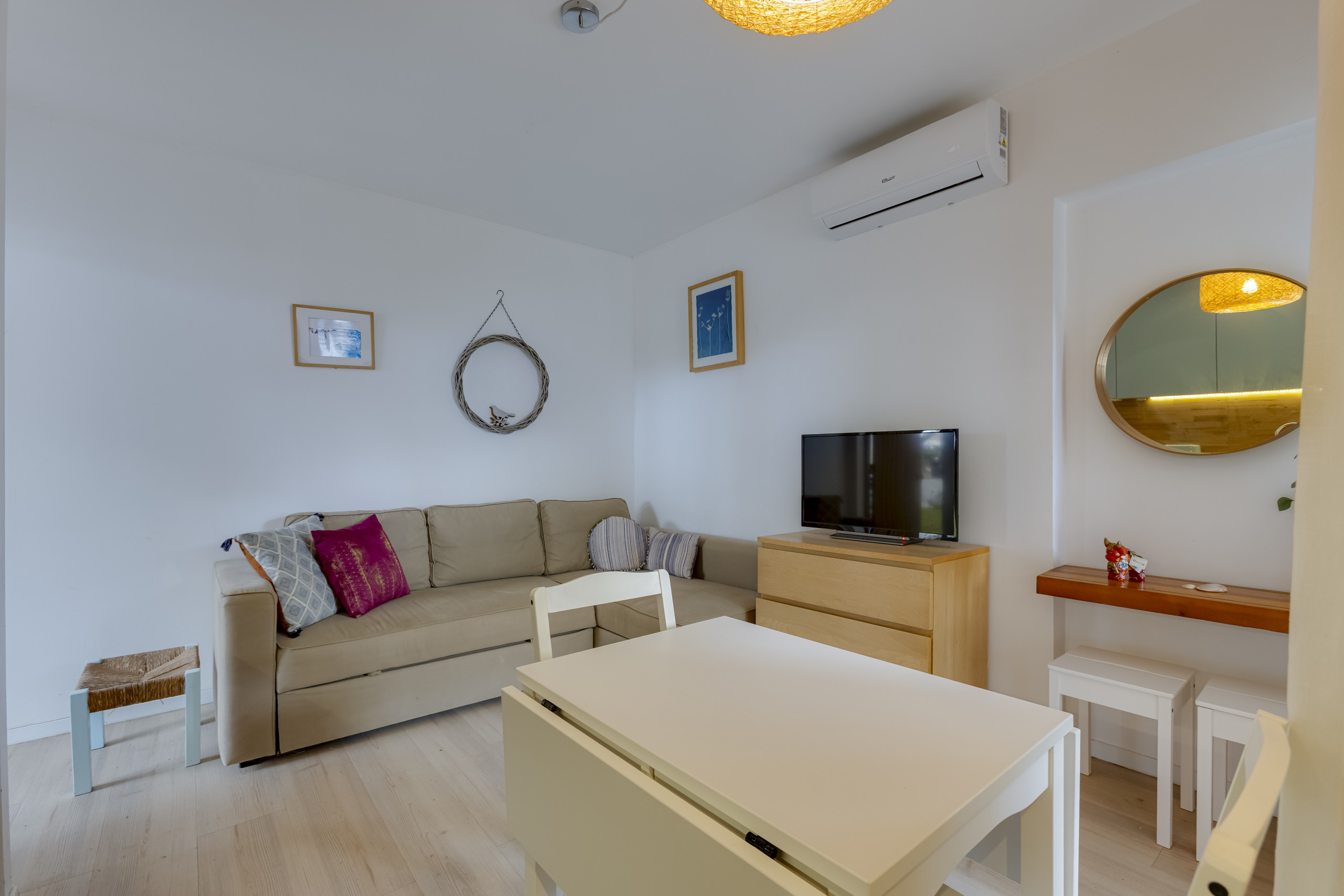 • Équipements : Climatisation dans le salon (essentielle en été !), Wi-Fi et TV.